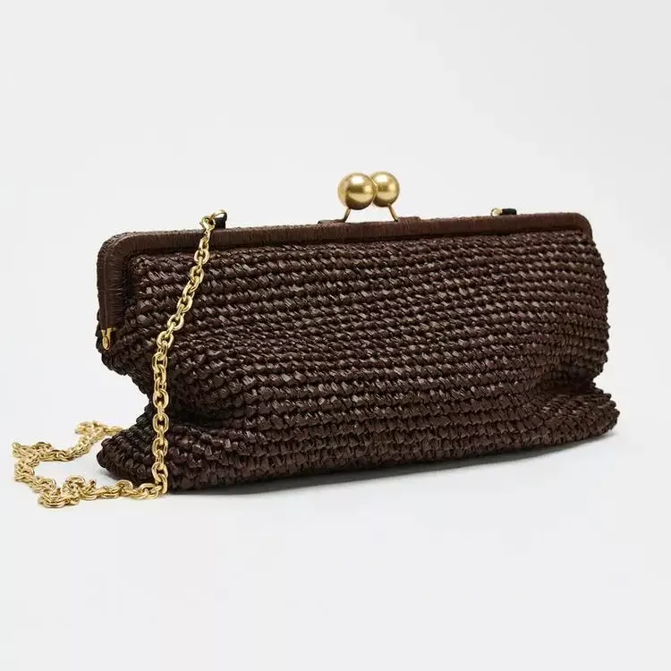 Luxury Gold Woven Evening Bag with Metal Handle – Elegant Women’s Clutch