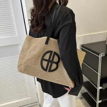 Elongated Woven Shopper Bag – Chic Knitted Tote for Everyday Elegance