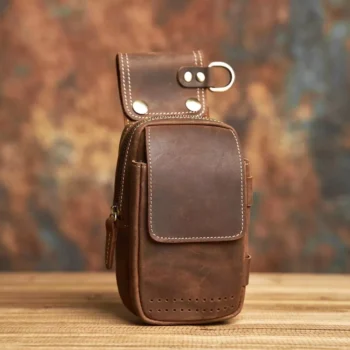 Genuine Leather Men’s Waist Bag with Key Hook & Phone Pocket