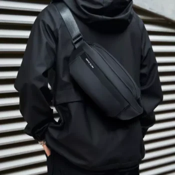 Men’s Anti-Theft Waterproof Chest Crossbody Bag with Headphone Port