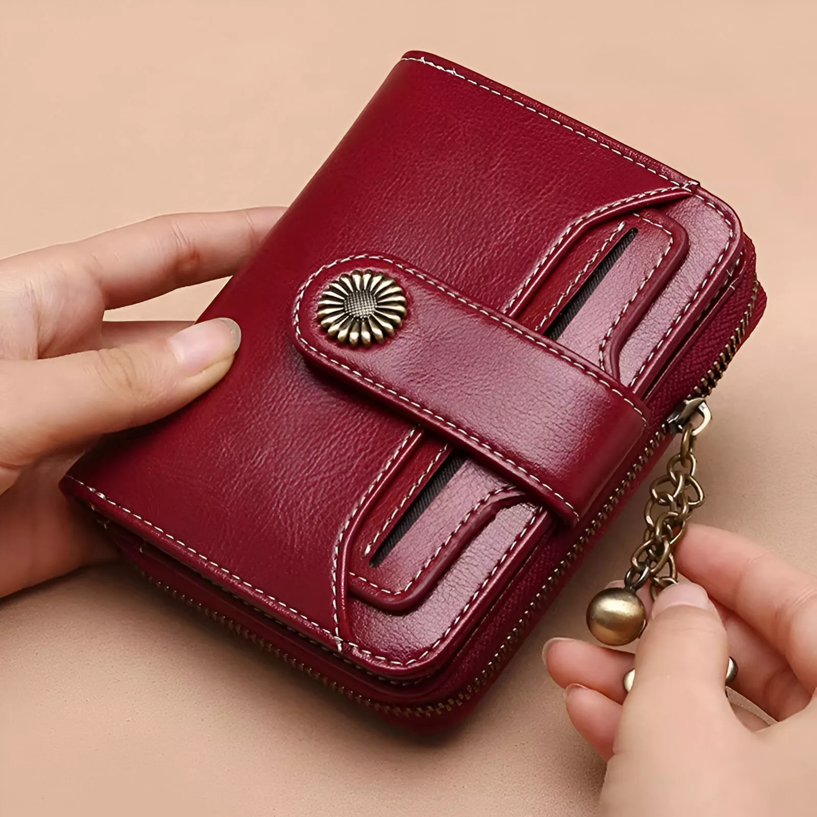 Genuine Leather Women’s Zipper Wallet with Chain – Small Coin Purse