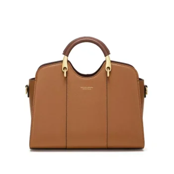 Elegant Leather Shoulder & Crossbody Handbag with Gold-Tone Accents