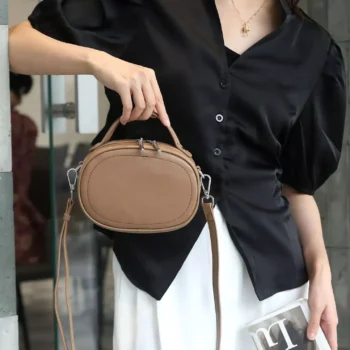 Women’s Genuine Cow Leather Crossbody Purse – Lightweight Round Shoulder Bag