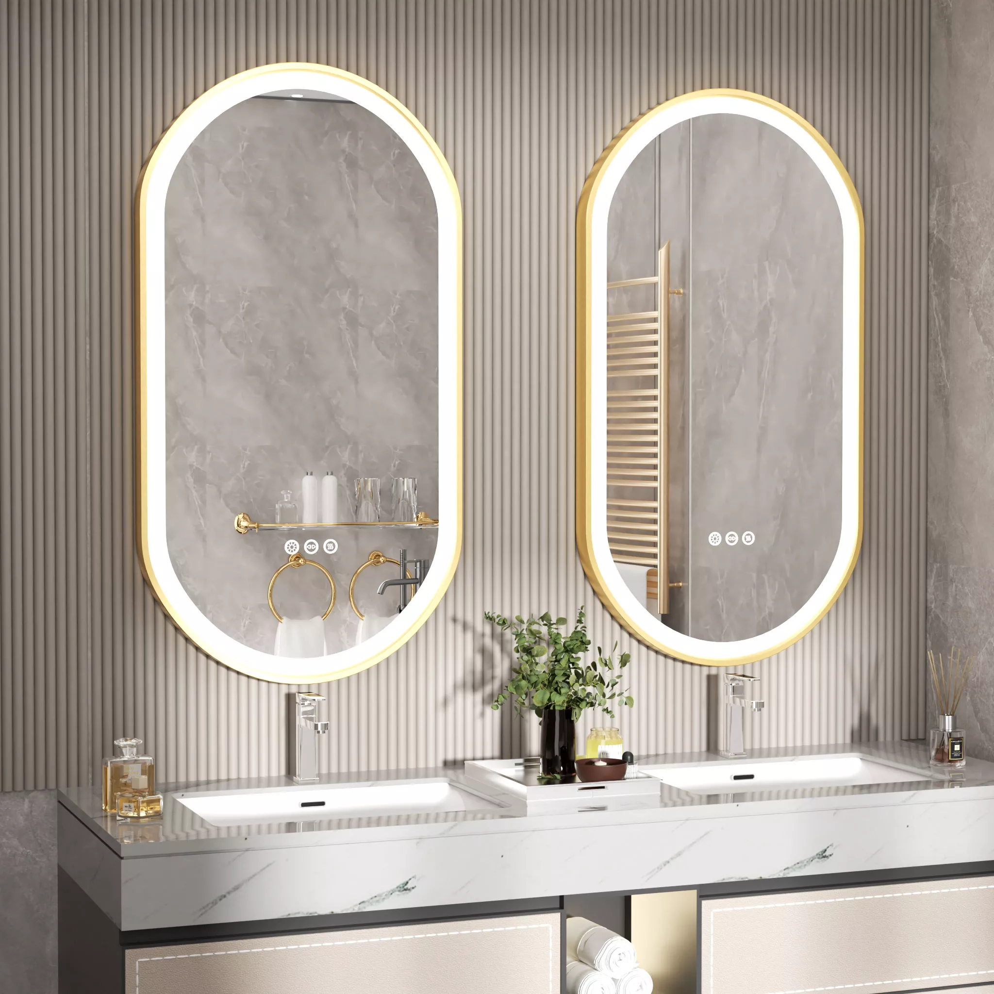 LED Oval Gold Bathroom Mirror with Dimmable Light & Anti-Fog
