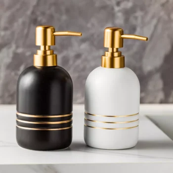 Elegant Gold Ceramic Lotion & Soap Dispenser for Bathroom and Kitchen