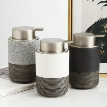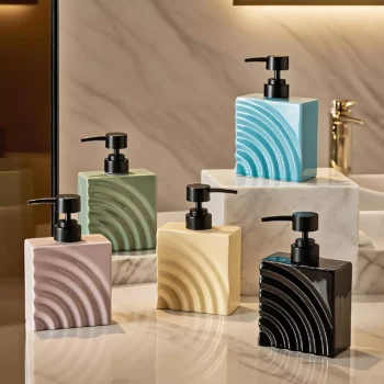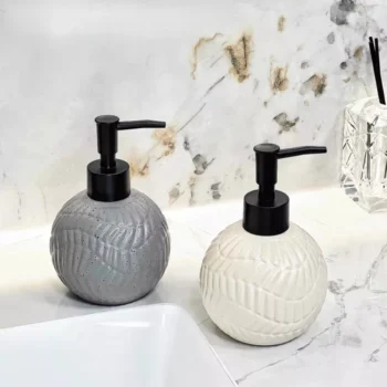 Modern Embossed Ceramic Lotion & Soap Dispenser – Press Pump Bottle