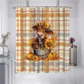 Pastoral Cow & Sunflowers Shower Curtain with Hooks