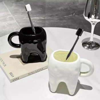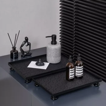 Modern Black Stripe Ceramic Bathroom Accessory Set – 4-Piece Countertop Organizer