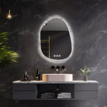LED Mirror Bathroom Cabinet with Sensor Switch, Aluminum Double Door, Adjustable Shelf
