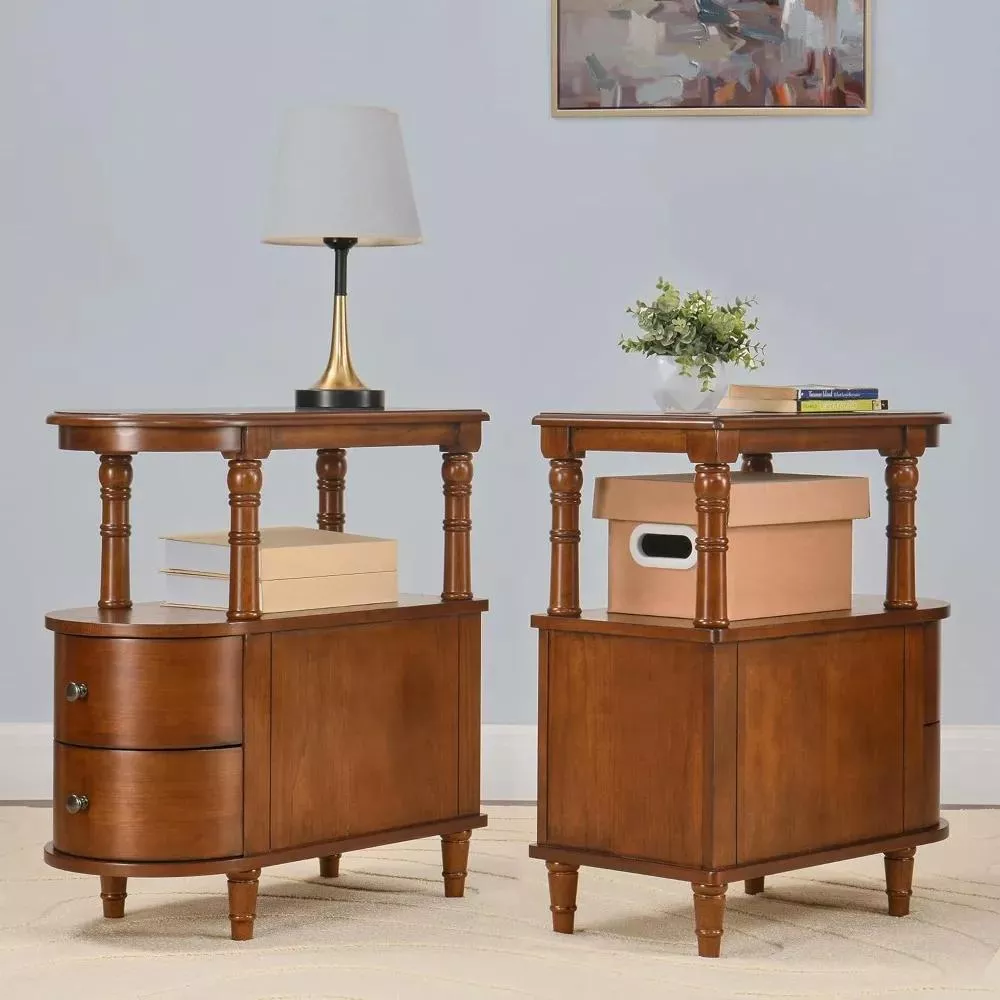 Fully Assembled 2-Drawer Wooden Nightstands Set
