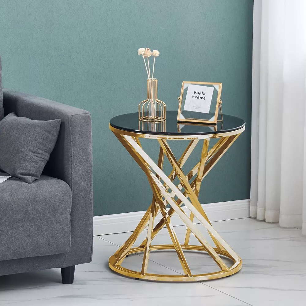 Mid Century Modern Round End Table with 3 Drawers and Metal Legs