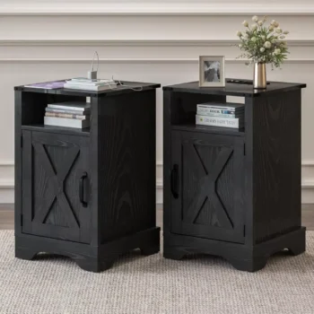 26″ Farmhouse Nightstand Set of 2 with Charging Station & Storage Drawers