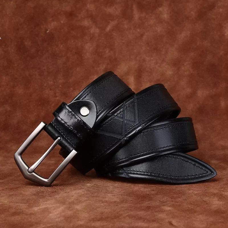 High-Quality 3.8 cm Genuine Cowhide Leather Pin Buckle Belt for Men
