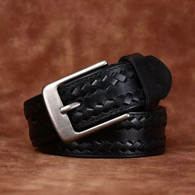 3.8CM Pure Cowhide Leather Belt for Men – Vintage Style