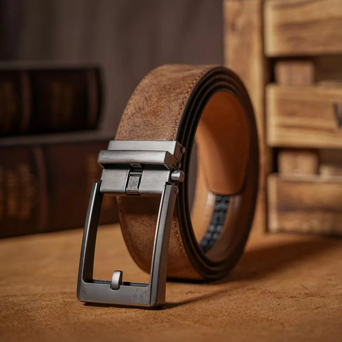 Men’s Genuine Leather Automatic Buckle Belt – 1.38 in Wide Formal & Casual Strap
