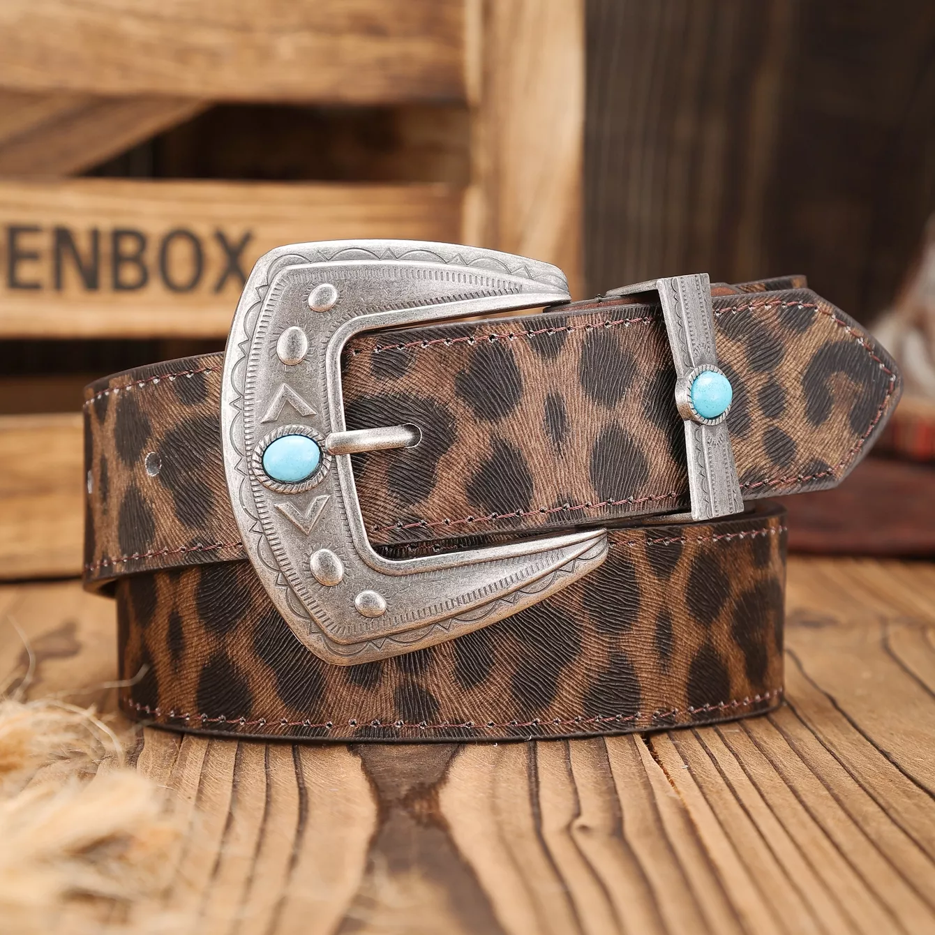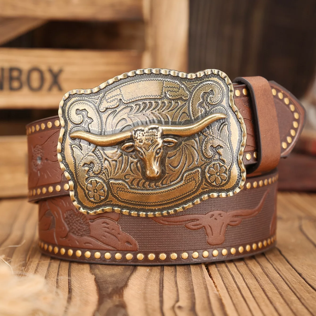 Men’s Premium Genuine Leather Belt – Vintage Cowboy Retro Buckle