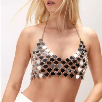 Heart Sequin Backless Halter Tank Top