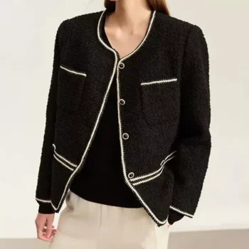 Elegant Women’s Crewneck Beaded Buckle Short Jacket
