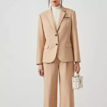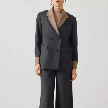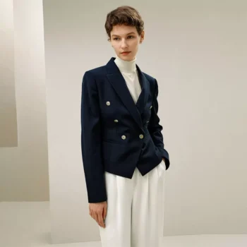 Women’s Slim Fit Double-Breasted Wool Blazer with Silk Lining