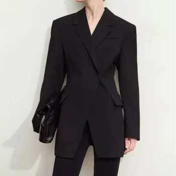 Minimalist Asymmetrical Lapel Blazer with Wide Padded Shoulders