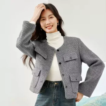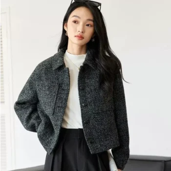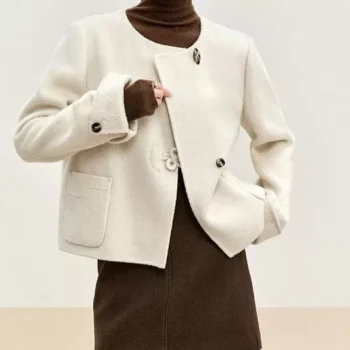 Short Double-Sided Woolen Coat for Women – Winter Crop Warm Overcoat