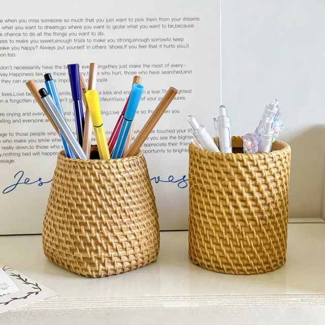 More than just a storage piece, this rattan-inspired organizer is a stylish accent for your home. Use it in the morning to keep your brushes neatly displayed, or at work to keep pens and office supplies within reach. Its neutral, woven look makes it versatile enough to complement different décor styles, from bohemian chic to coastal charm. Unlike ordinary plastic holders, this piece adds personality and a sense of calm to your space.