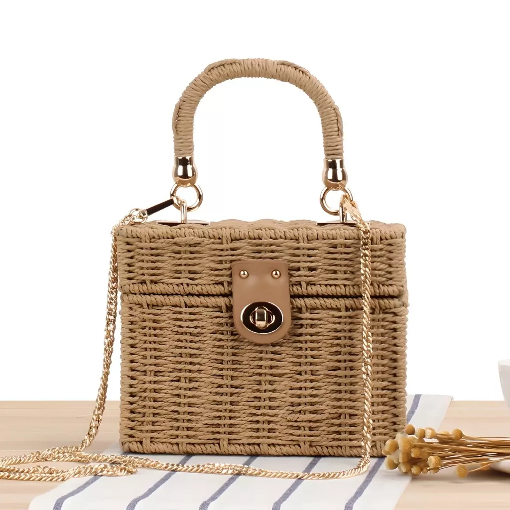 Elevate your summer style with our Box Straw Beach Bag, a delightful blend of bohemian charm and practical design. Handmade from high-quality straw, this shoulder bag exudes a rustic yet elegant appeal that complements any casual or beach outfit. Whether you’re exploring the market, lounging by the shore, or heading to a summer festival, this versatile bag is your go-to accessory.