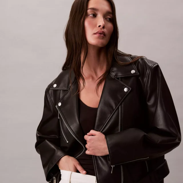 This biker jacket is perfect for fall and winter, giving you a stylish layer that pairs effortlessly with jeans, skirts, or dresses. Whether you’re heading out for a casual day in the city or dressing up for an evening out, it brings instant confidence and edge to your look. The relaxed fit ensures all-day comfort, while the luxurious lining keeps you warm on chilly days. What makes it special is its blend of classic biker attitude with modern, feminine touches—exactly what you’d expect from Calvin Klein.
