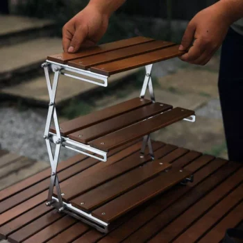 Solid Wood Collapsible Multifunction Shelf for Outdoor Picnics