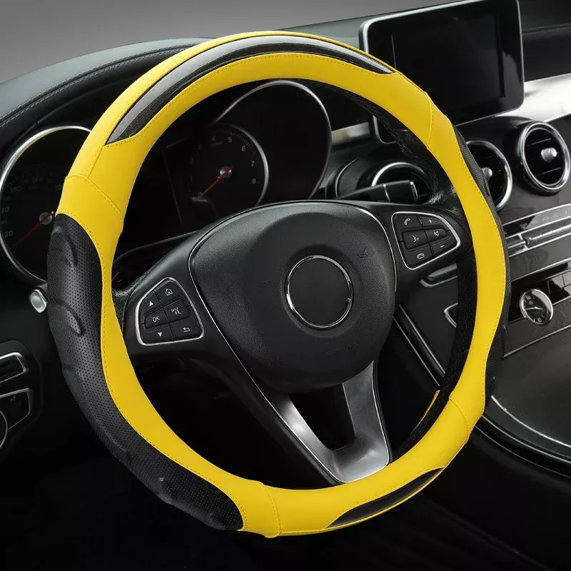 Luxury Perforated PU Leather & Carbon Fiber Steering Wheel Cover – Universal Fit