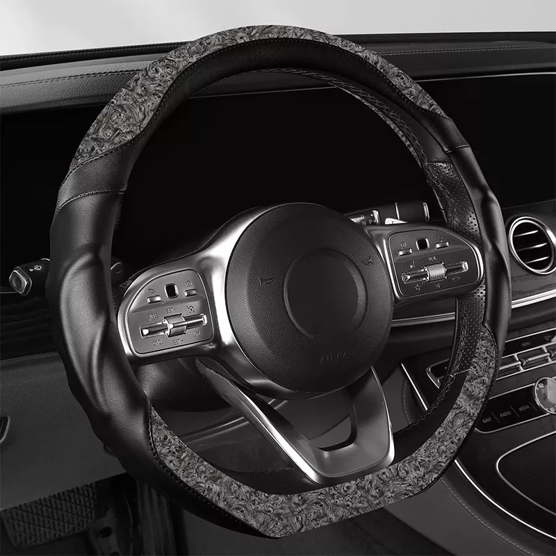 Wood Grain Leather Steering Wheel Cover 14.5″-15″