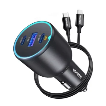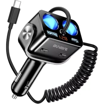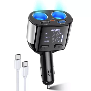 5-in-1 USB-C Car Charger Adapter with Dual Socket & 30W Fast Charging Cable
