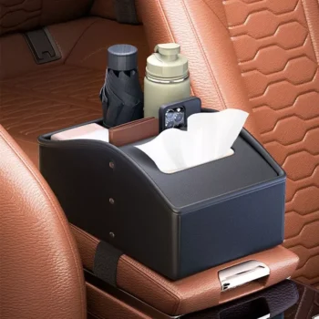 Luxury PU Leather Car Armrest Organizer with Plush Elbow Support