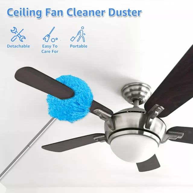 Say goodbye to balancing on stools or dragging out heavy ladders—cleaning your ceiling fan is now quick, safe, and effortless with this Ceiling Fan Duster with Extension Pole. Designed for high ceilings and hard-to-reach blades, this smart cleaning tool features two detachable fiber dusting heads that gently but thoroughly trap dust, pet hair, and allergens. The ultra-soft microfiber head hugs the surface of each blade without scratching or scattering dust into the air.