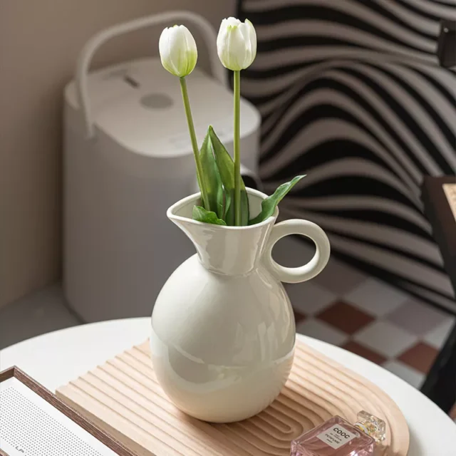 The beauty of this vase lies in its versatility. Whether you’re arranging a bouquet of fresh roses, displaying dried pampas grass, or experimenting with hydroponic plants, it provides a stylish base to bring your vision to life. The retro handle detail adds a touch of uniqueness that sets it apart from ordinary vases, while its ceramic build ensures long-lasting quality.