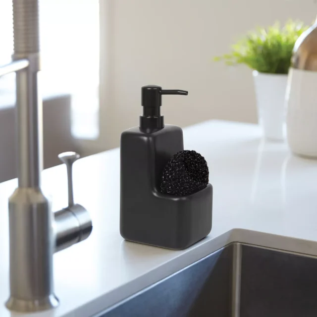 This product is best used in the kitchen or bathroom—wherever you want to keep soap and scrubbers within easy reach without creating clutter. It’s especially ideal for smaller spaces where countertop real estate is limited. With its matte black ceramic finish and minimal design, it’s more than just functional—it’s a décor upgrade.