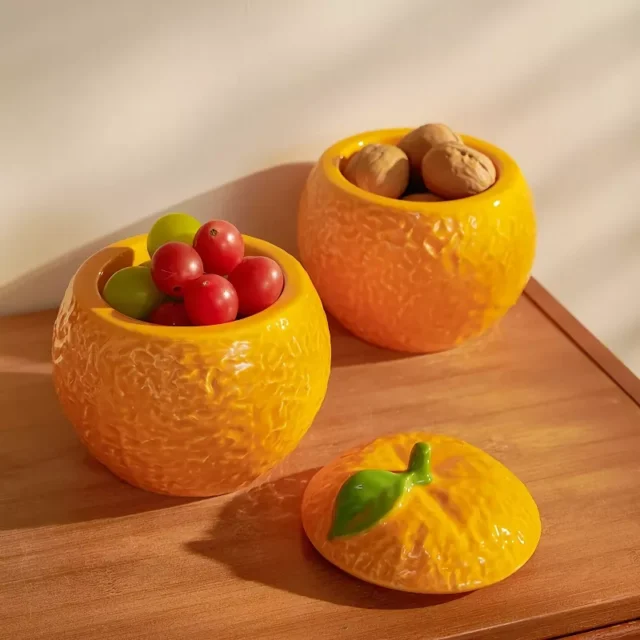 Whether you’re storing tea, spices, or small accessories, this fruit-inspired jar will serve as a delightful storage solution. With its vibrant orange hue and realistic design, it doubles as a decorative figurine, making it an ideal addition to your home decor. The lid securely seals the contents, ensuring your items stay fresh and organized, while the smooth, rounded shape makes it a visual treat on any countertop or shelf.