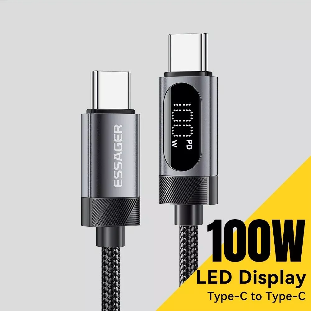 100W USB C Fast Charging Cable with LED Display for Type-C Devices