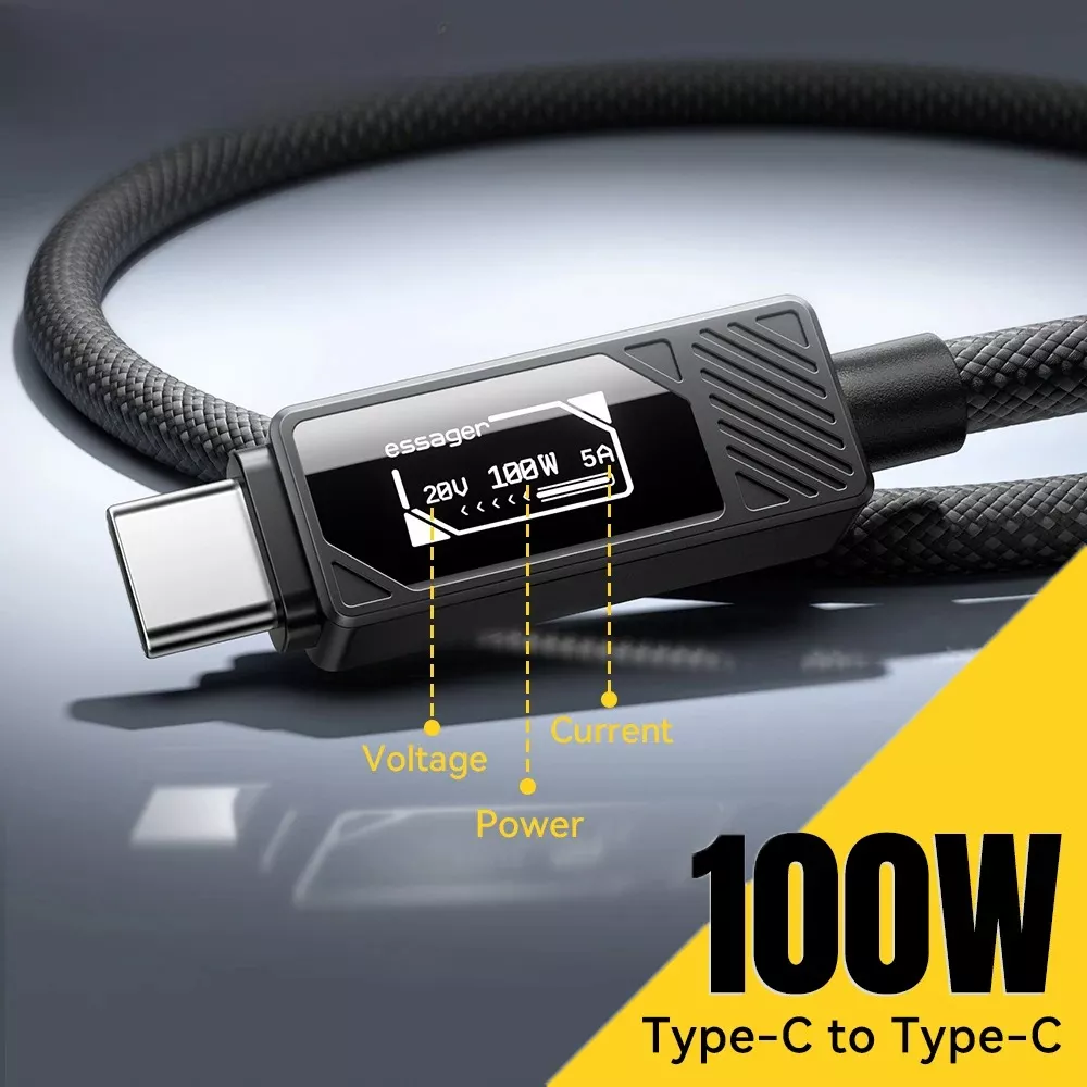 100W USB-C to USB-C Fast Charging Cable with Digital Display
