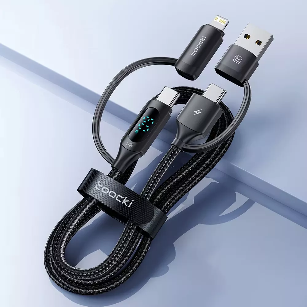 4-in-1 Fast Charging Cable with LED Display – USB & Type-C to Lightning and USB-C