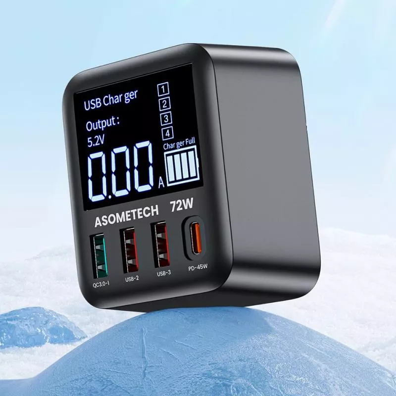 72W USB-C Fast Wall Charger with LED Display & 4 Smart Ports