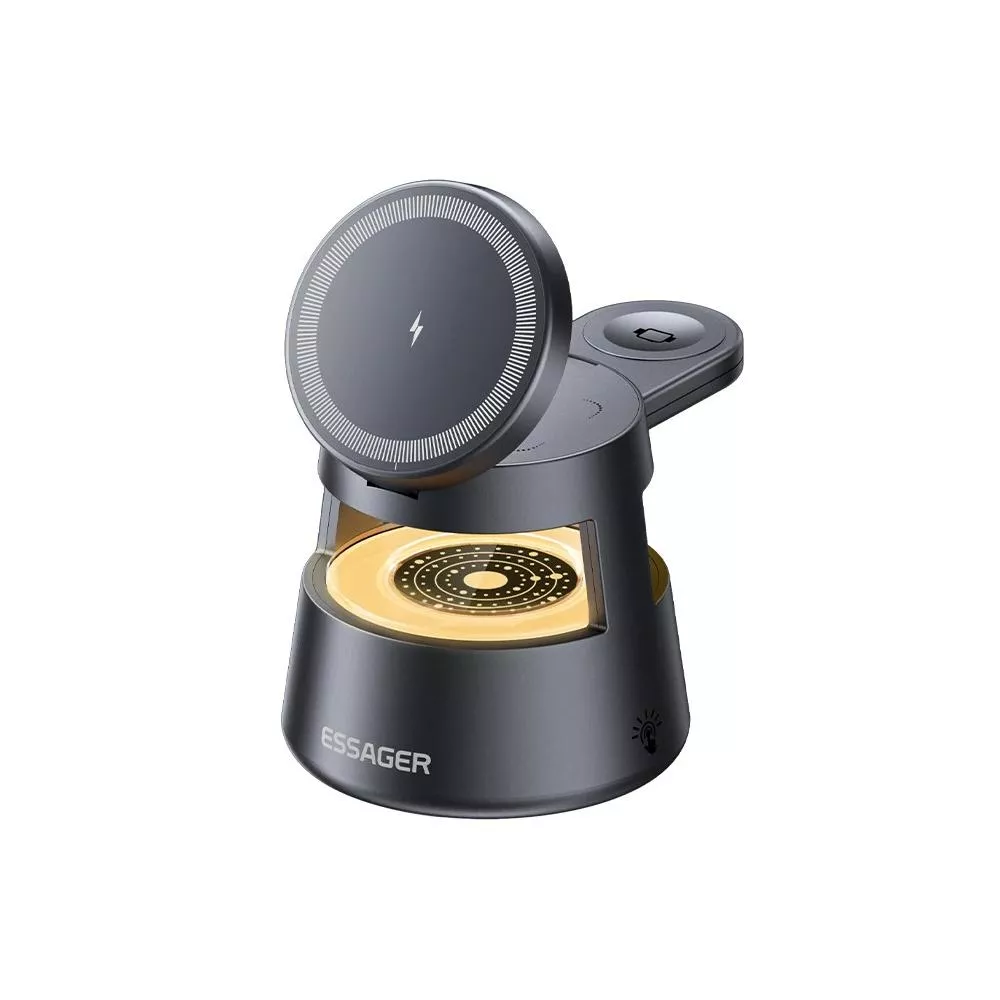 15W 3-in-1 Magnetic Wireless Charger with Retractable Cable for Phones, Watches & Earbuds