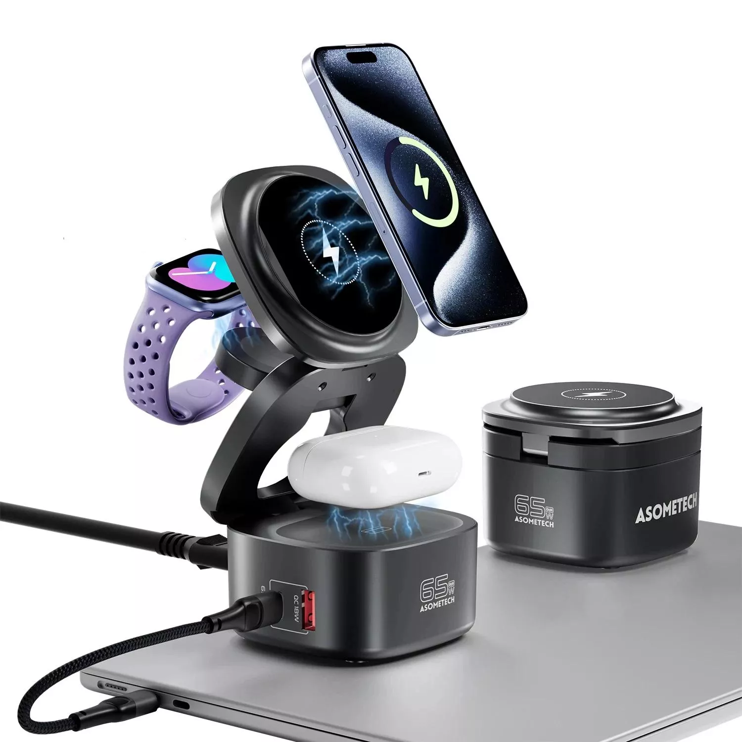 65W 4-in-1 GaN Wireless Charging Station for iPhone, AirPods & More