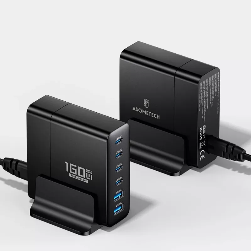 160W GaN 6-Port Fast Charger with USB-C & USB-A Outputs for Multiple Devices