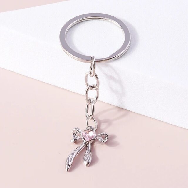 Introducing our latest addition to your everyday essentials – the Charming Crystal Bowknot Heart Keychain. This exquisite piece is more than just a keychain; it’s a statement of fashion, a sprinkle of elegance on your daily routine, and a perfect accessory for women and girls who appreciate a touch of glamour in their lives. Designed with a cute and romantic bowknot pattern, adorned with sparkling crystals, it serves not just as a key holder but also as a stylish pendant for your handbag or a unique charm for creating personalized DIY jewelry.