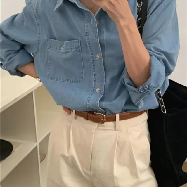 Our Denim Blouse boasts a light-washed, soft fabric blend that offers both durability and ease, making it ideal for the spring and summer seasons. The full sleeves provide coverage yet allow for free movement, ensuring you stay comfortable all day long. Its turn-down collar and single-breasted closure type add a touch of classic denim shirt aesthetics, while the straight clothing pattern flatters your silhouette without compromising on comfort. The thin material composition is perfect for layering on cooler days or wearing alone when the sun is shining. Plus, it’s designed with a non-stretch fabric, ensuring the blouse maintains its shape wear after wear.