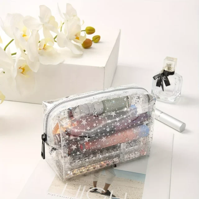 The Chic Transparent Star PVC Makeup Bag is designed to combine style and practicality in one sleek package. Its transparent design isn’t just trendy – it’s functional too, allowing you to see your products at a glance. Say goodbye to digging through your bag to find that lipstick or eyeliner. Additionally, the waterproof material ensures your products stay dry and safe, while the spacious interior makes it perfect for organizing all your essentials. Whether you’re storing makeup, toiletries, or skincare products, this organizer will keep everything in perfect order.