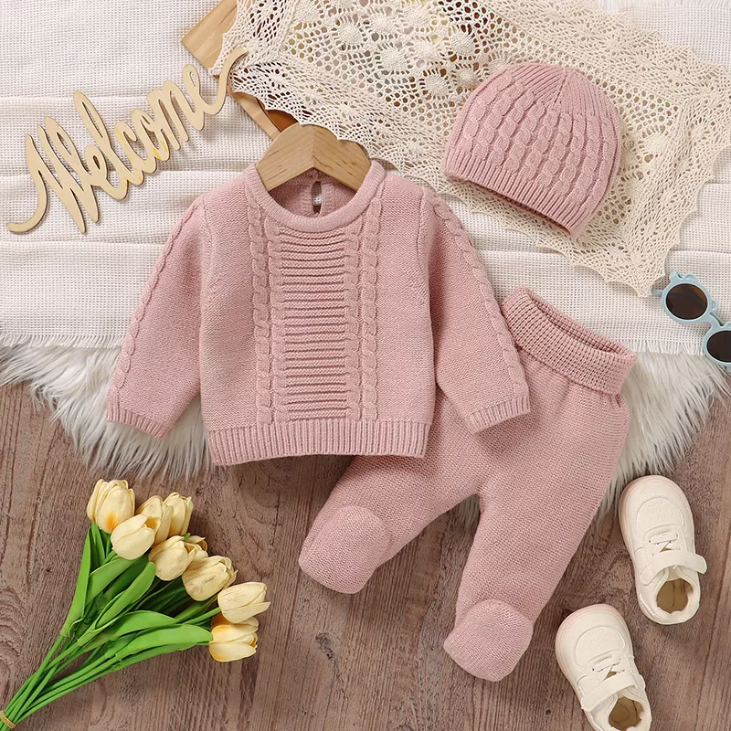 Knit Baby Girl Outfit – Cozy Sweater Dress & Pants Set 0-9M
