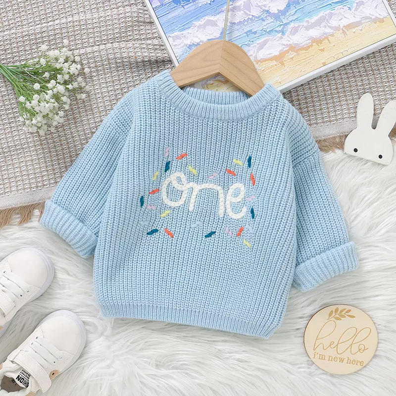 Cozy Knitted Baby Sweater with Embroidered Letter
