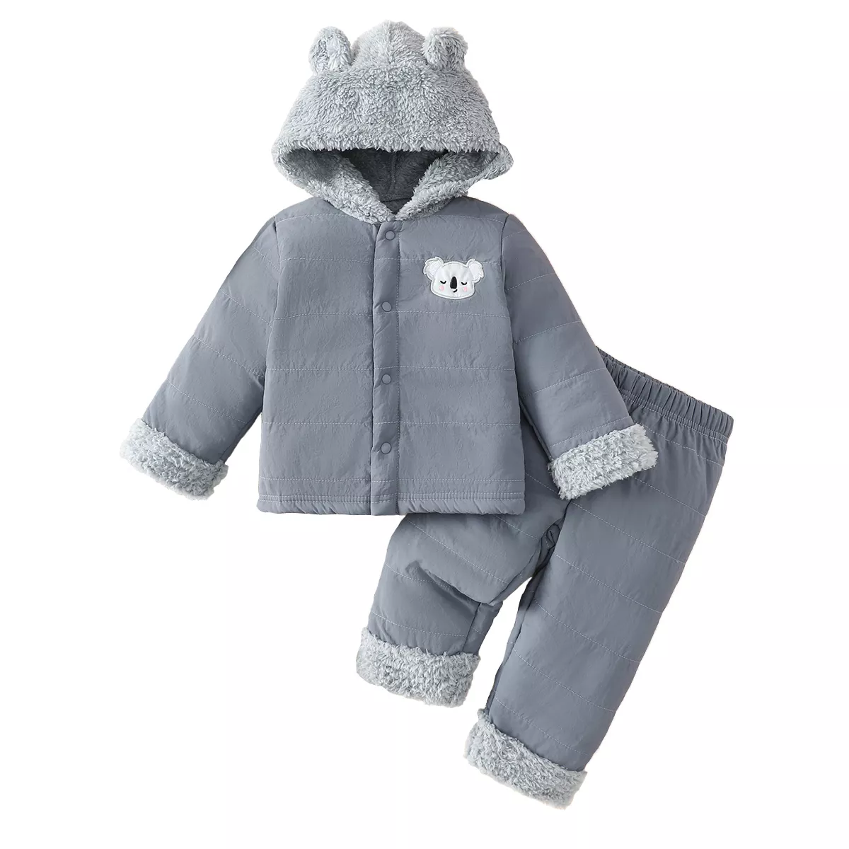 Winter Koala Baby Fleece Hooded Jacket & Pants Set for 0–3 Years